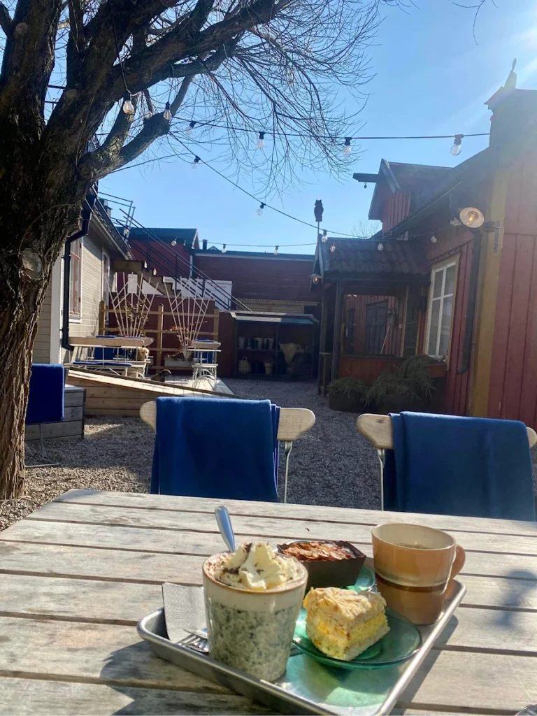 EN- After our little city tour, we needed a Swedish Fika break. We chose Visthuset Trosa. They had opened up the garden and we sat down against the house wall with the sun warming our faces. Here we stayed for a long time and enjoyed both coffee and the warmth of the sun.